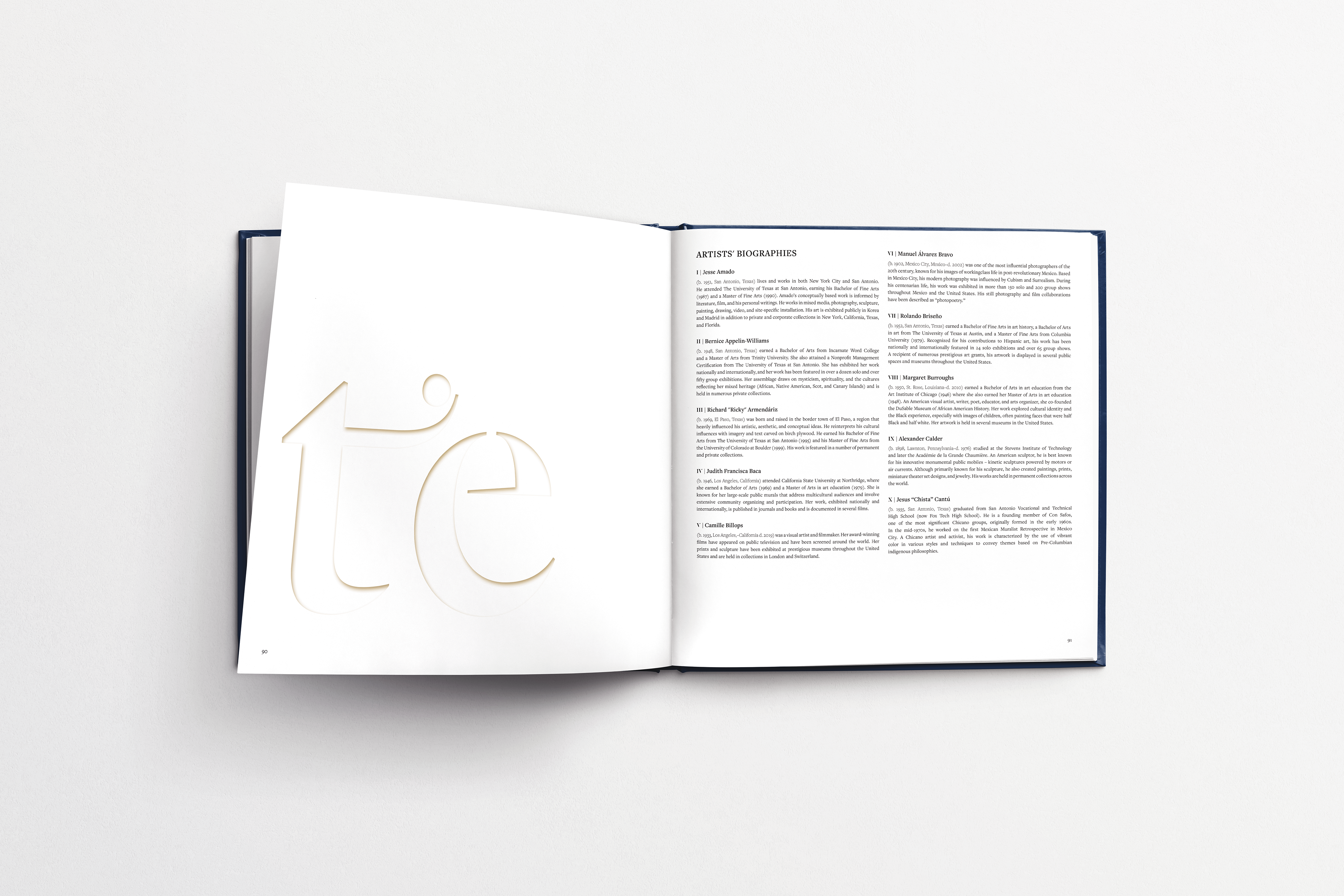 I had the privilege of creating a stunning book for The Office of the President at The University of Texas at San Antonio, showcasing 50 artworks from renowned regional, national, and international artists, many with ties to San Antonio. This curated selection includes sculptures, paintings, mixed media, and works on paper, offering valuable insights into UTSA's culture, history, and identity over the past 50 years, with a special emphasis on the city's vibrant Hispanic cultural heritage.